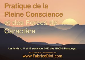 Il y a également la possibilité de suivre un programme pour découvrir la pleine conscience et l’intégrer dans votre vie – en individuel, à deux ou à trois (sur rendez-vous à Sion, Martigny, Massongex ou à distance par internet).